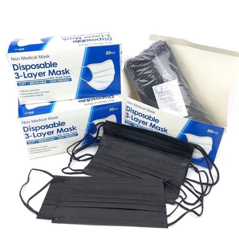 🔥 ขายดีอันดับ1🔥พร้อมส่ง🖤หน้ากากอนามัยสีดำ 2 ด้าน/แมสสีดำราคาถูกสุดกล่องละ50ชิ้นแมสคาร์บอน