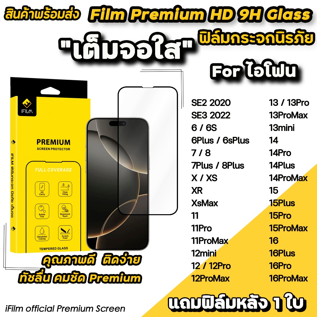 🔥HOT iFilm ฟิล์มกระจก เต็มจอใส For iphone 16 pro max 16plus 15promax 15plus 14pro 13 mini iphone11 7/8 plus ฟิล์ม ไอโฟน