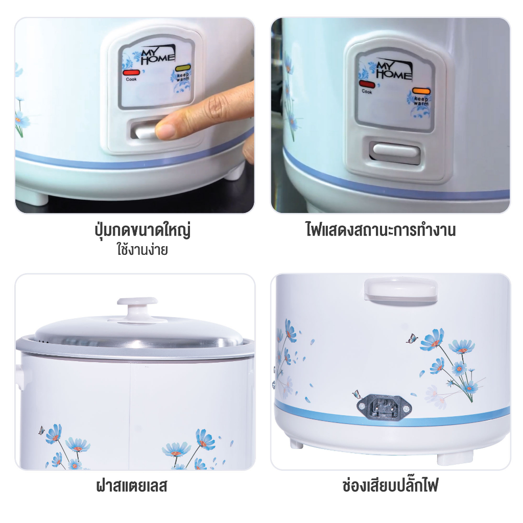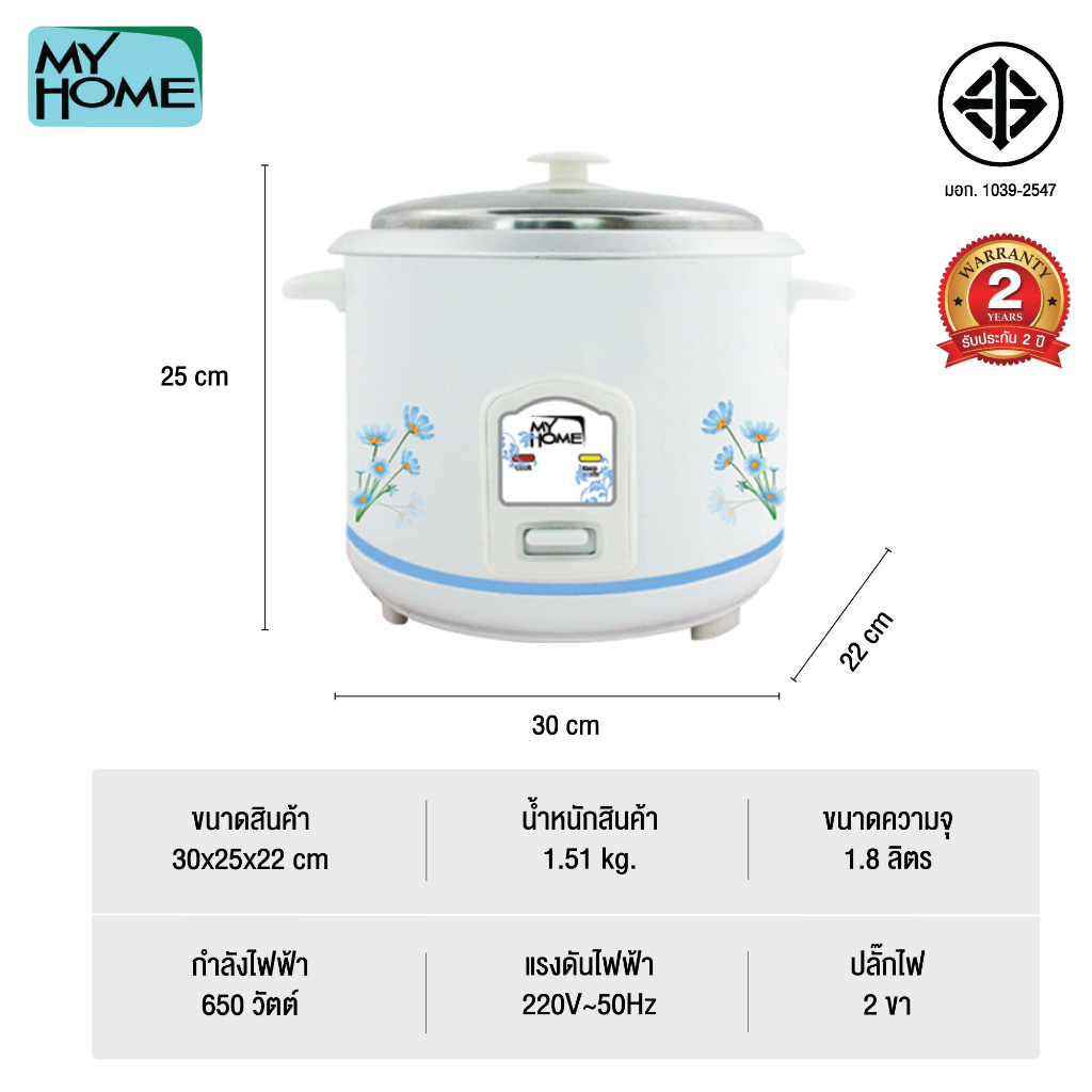 MyHome หม้อหุงข้าว ขนาด 1.8 ลิตร รุ่น A706 MH รับประกัน 2 ปี