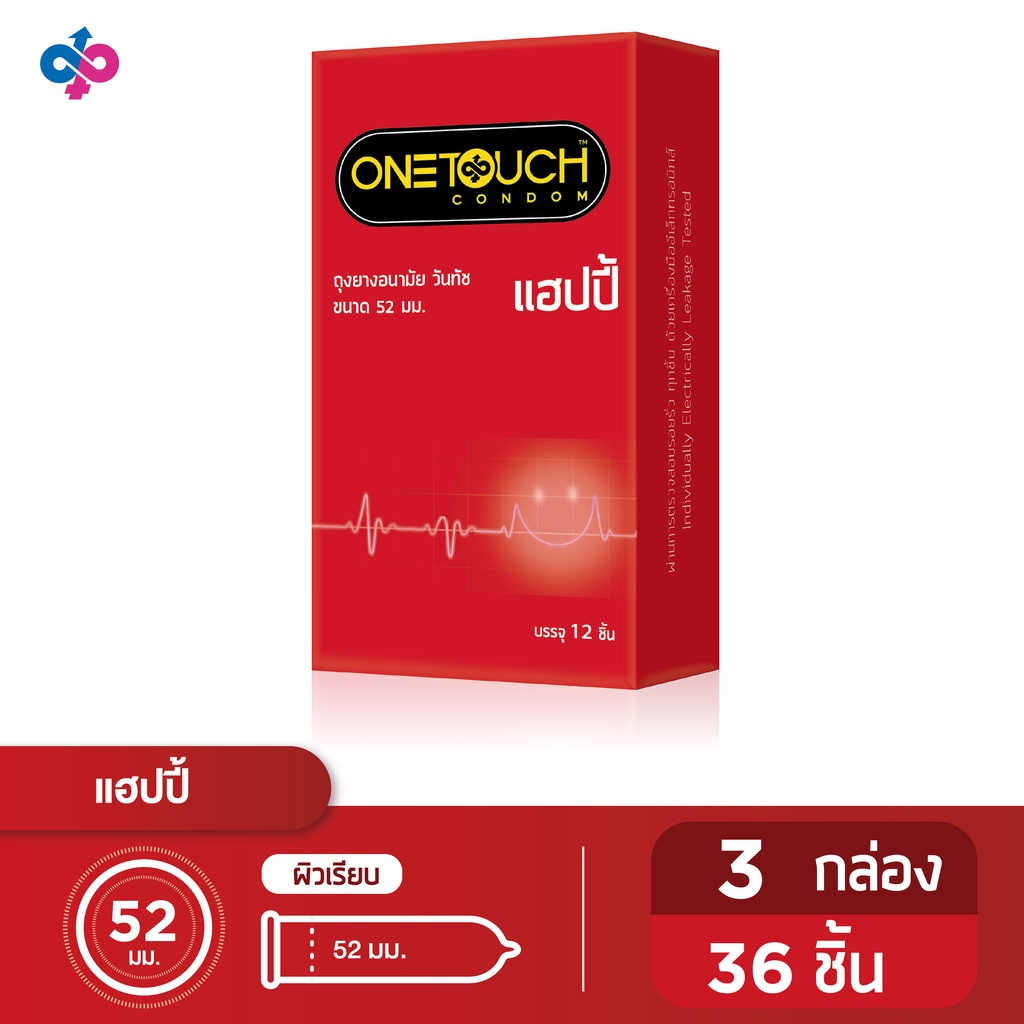 Onetouch ถุงยางอนามัย ขนาด 52 mm. รุ่น Happy Family Pack 3 กล่อง 36 ชิ้น