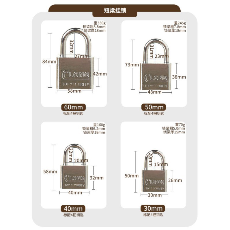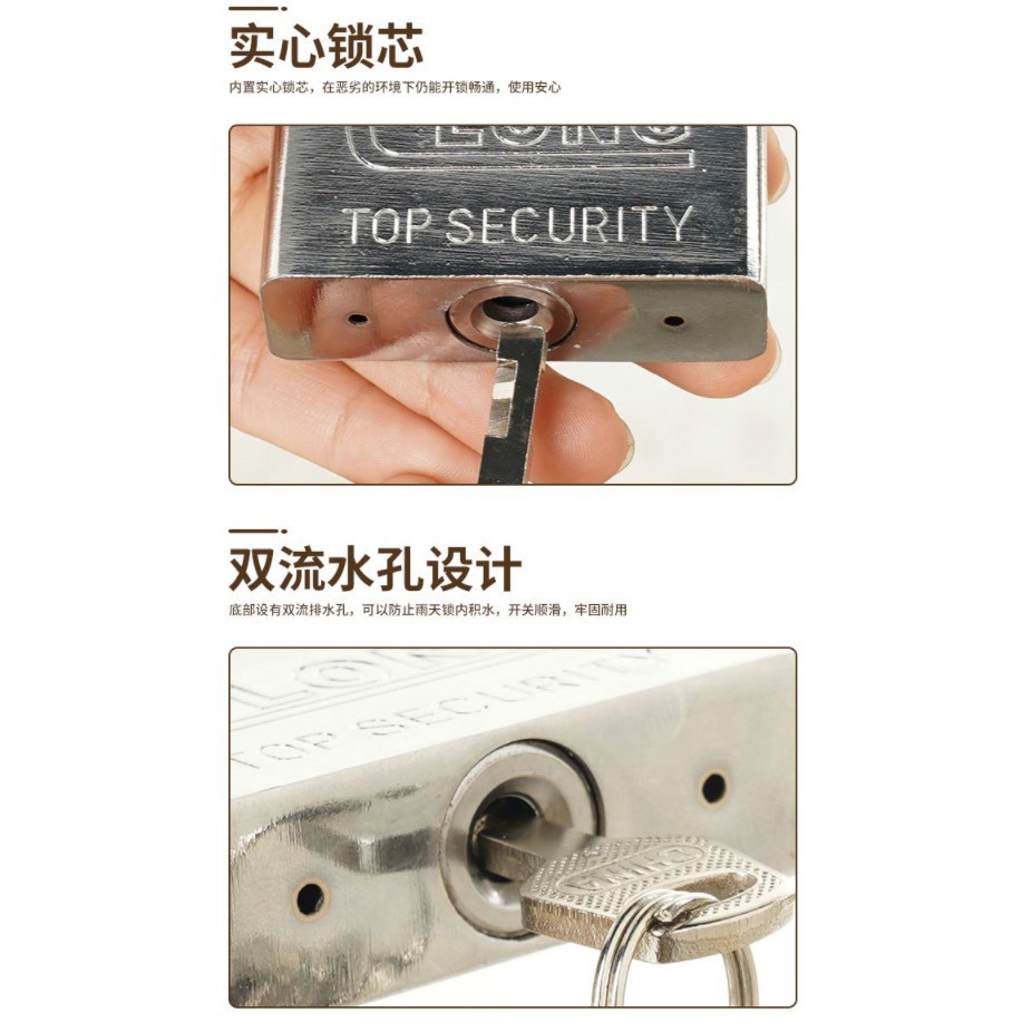ใช้สำหรับคล้องประตู รั้ว อาคารบ้านเรือนโกดัง หรือทรัพย์สินที่มีค่าของท่าน แข็งแรง ทนทาน ลูกกุญแจสำรอง 3 ดอก ผลิตจากเหล็กกล้าอย่างดี เคลือบแข็ง ป้องกันกุญแจผี ใช้สำหรับล๊อค ทรัพย์สินที่มีค่าของท่าน ป้องกันการก๊อปปี้ลูกกุญแจ สามารถป้องกันการดัด งัด แงะ ได้ดี