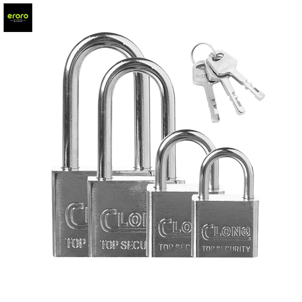ERORO แม่กุญแจลูกปืนสีเงิน กุญแจล็อกบ้าน แม่กุญแจสแตนเลส คอสั้น คอยาว ขนาด 30/40/50/60mm.