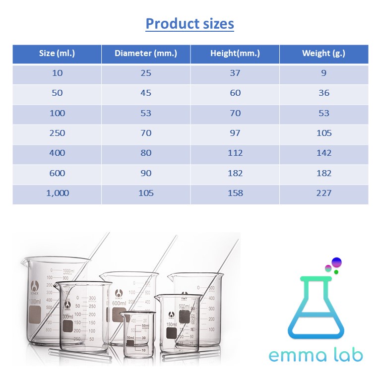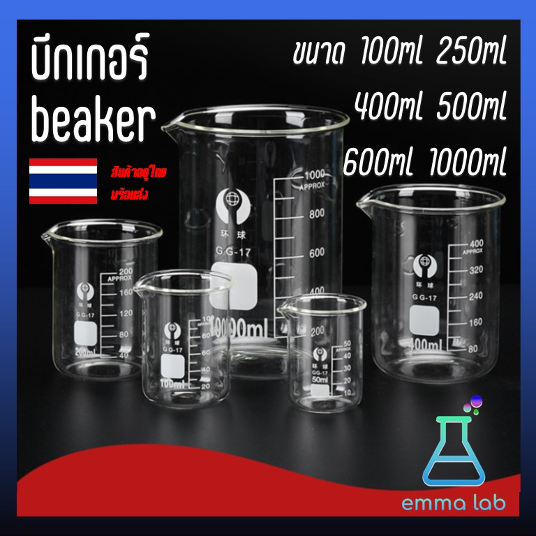 ... ื่องป้องกัน) ขนาด 100ml, 250ml, 400ml, 500ml, 600ml, 1000ml วัสดุ ผลิตจากแก้วเนื้อดีแก้วโบโรซิลิเกต Borosilicate Glass ทนอุณหภูมิสูงสุด: 500 องศาเซลเซียส (Maximum Temperature: 500 Degree Celsius) สามารถใช้ตวงเพื่อทำการทำลอง ตวงสารเคมี ผลิตสบู่ ผลิตน้ำยาล้างจาน และอุปกรณ์อื่นๆขนาด บรรจุ 1 ชิ้น/ แพ็ค About this item Package contains: 1 borosilicate glass beaker 100/250/500/600/1000ml. Product material: the beaker is made of high quality 3.3 borosilicate glass (GG-17), laboratory grade glassware. Product features: high temperature resistant, acid and alkali resistant, with good stability. The beaker is suitable for mixing heated liquids, and the scale is clear and easy to read. Large-capacity beaker, easy to clean, suitable for home brewing, making drinks, measuring large volumes of liquid, making soap, experiment, science fair project, etc. #บีกเกอร์ #บิกเกอร์ #Beaker #glass beaker #Borosilicate Glass #เทสารเคมี