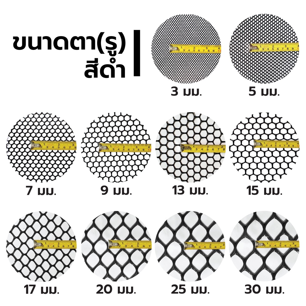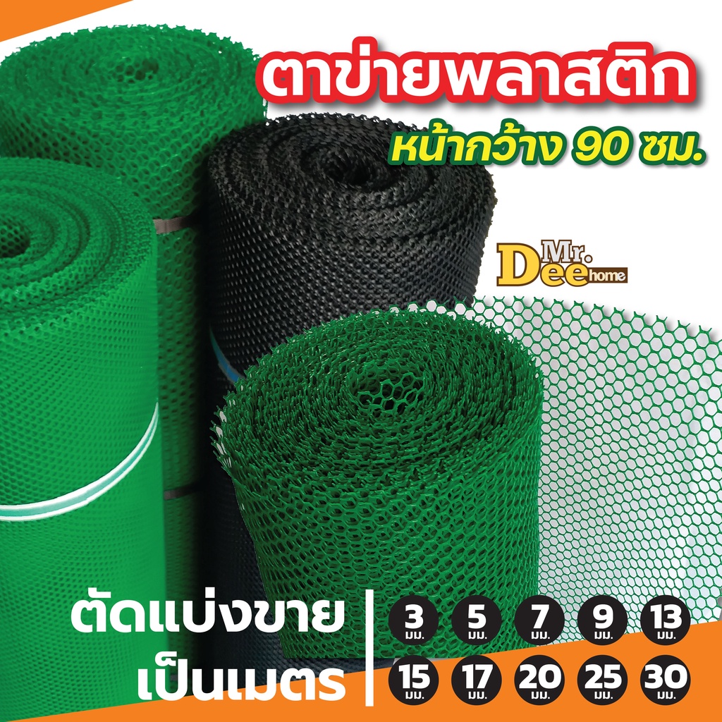 ตาข่ายพลาสติกทำจากพลาสติกเนื้อ HDPE (High Density Polyethylene) ขนาดหน้ากว้าง (สูง) 90 ซม.แบ่งขายเป็นเมตร ตัดความยาวตามต้องการใช้ ขนาดของรูตาข่ายพลาสติกมีให้เลือกตั้งแต่ตา 1 มิล - 30 มิล **ต้องการความยาวยกม้วน 5, 10, 30 เมตร หรือขนาดอื่นๆ ทักแชทขอ link สินค้าจากแอดมินได้เลยค่ะ ** คุณสมบั