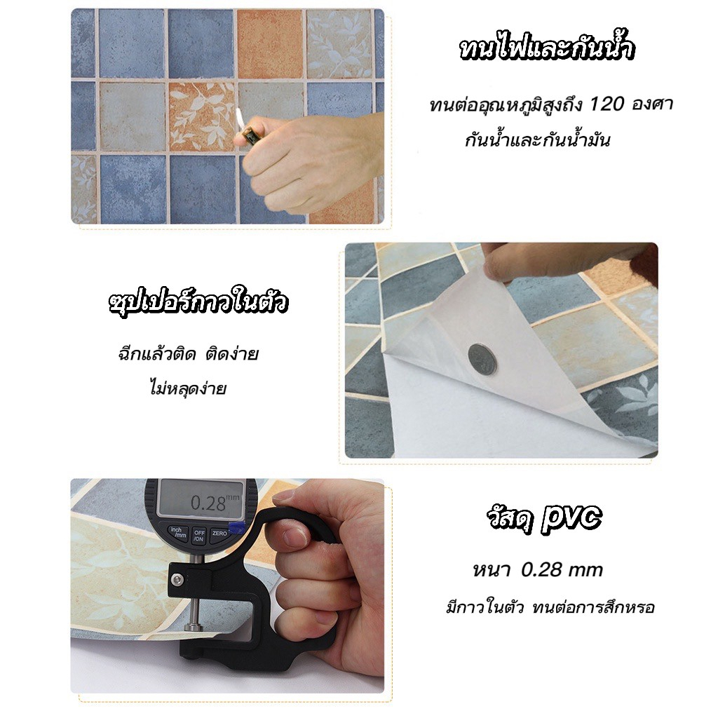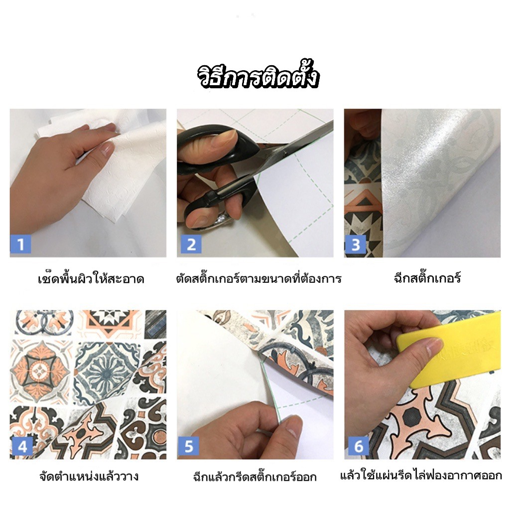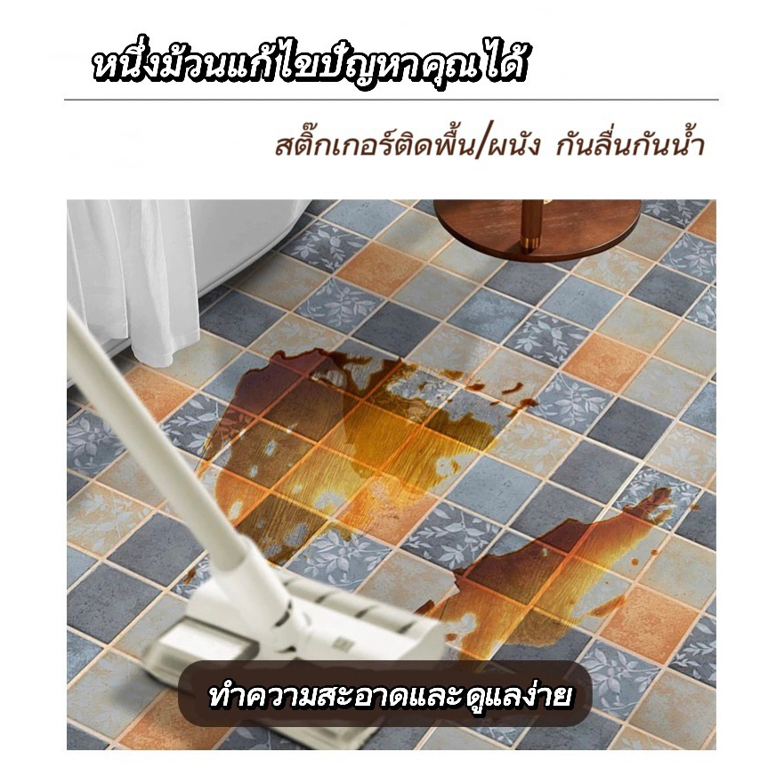 ... ้องน้ำ ผนังห้องน้ำ 👉🏻วัสดุสินค้า=เนื้อpvc เนื้อหนา คุณภาพดี เกรดพรีเมี่ยม 👉🏻ขนาดสินค้า 1 ม้วน = หน้ากว้าง 60 ซม. x ยาว 3 เมตร. 👉🏻ความหนา 0.28MM ✅กันน้ำ เช็ดคราบได้ อายุการใช้งาน 3-4ปี ขึ้นกับความเรียบของพื้นด้วยนะคะ ✅มีกาวในตัวติดง่าย ไม่ต้องใช้ช่าง ลอกออกแปะได้เลย ✅ไม่มีกลิ่นเหม็น ไม่มีสารเคมีที่เป็นอันตรายสำหรับเด็ก ✅ช่วยปกปิดคราบสกปรก เช่น คราบเหลือง ดำ บนกำแพง ✅สามารถตกแต่ง ติดตู้ เฟอร์นิเจอร์บานประตูได้เลยตามใจชอบ ✅สามารถติดได้ทุกพื้นผิวเรียบไม่ว่าจะเป็นปูนสีภายในปกติ ปูนเปลือยกระเบื้องหรือไม้ผิวเรียบ แผ่นยิปซั่ม พลาสติกผิวเรียบและอื่นๆ ⚠️ ⚠️ ⚠️สินค้าแต่ละล๊อตเฉดสีจะต่างกันเล็กน้อย แนะนำลูกค้าสั่งสินค้าให้เพียงพอกับพื้นที่ ที่ต้องการติดนะคะ ⚠️ ⚠️ ⚠️ข้อสังเกต:ผนังที่ทาด้วยสีน้ำมัน หรือแบบเช็คล้างไม่แนะนำให้ติดนะค่ะเนื่องจากผนังมีความมันค่อนข้างสูง การยึดเกาะจะไม่ค่อยดี แต่ถ้าลูกค้ายังต้องการติดในจุดนั้นให้ใช้กาวลาเท็กซ์ TOA ช่วยในการติดได้ค่ะ ⚠️ ⚠️ ⚠️ผนังบางประเภทติดไม่ได้ หากติดไม่แน่นให้ทากาวลาเท็กเท็กซ์ TOA ที่ผนังก่อนการติดตั้งนะคะ ✅✅วิธีการคำนวน เอากว้าง x ยาว หารด้วย 1.8 หน่วยเป็นเมตรนะคะ ตัวอย่างเช่น พื้นที่กว้าง 2เมตร ยาว 3เมตร = 2x3=6หารด้วย1.8 =3.3 เศษปัดขึ้น 4ค่ะ จะได้พื้นผิวสวยๆค่ะ 👉🏻 มีข้อสงสัยสอบถามได้ที่แชทนะค่ะ หรือ@200lcbjd วิธีการติดวอลเปเปอร์ 1. เช็ดทำความสะอาดบริเวณที่จะวอลเปเอร์ให้เรียบร้อย ⚠️ห้ามมีฝุ่นเด็ดขาด 2. แกะหรือขัดผิวผนังที่ขรุขระให้เรียบร้อย เช่น รอยกาวสองหน้า หรือรอยปูน 3. ทำการติดวอลเปเปอร์ได้เลย ⚠️ค่อยๆลอก วอลเปเปอร์ ติดจากด้านบนลงล่าง 4. ติดไปรีดไป รีดให้เรียบ อย่าให้มีฟองอากาศ 5. แผ่นต่อไป ติดให้ทับเกยกันเล็กน้อย ประมาณ 3-5 มม. 6. ตัดส่วนที่เกินออก ด้วยมีดคัทเตอร์ #wallpaper #วอลเปเปอร์ติดพื้น #สติ๊กเกอร์ติดพื้น #สติ๊กเกอร์กันน้ำ กันลื่น
