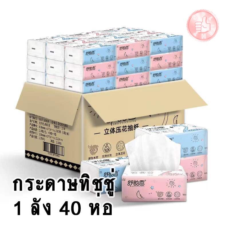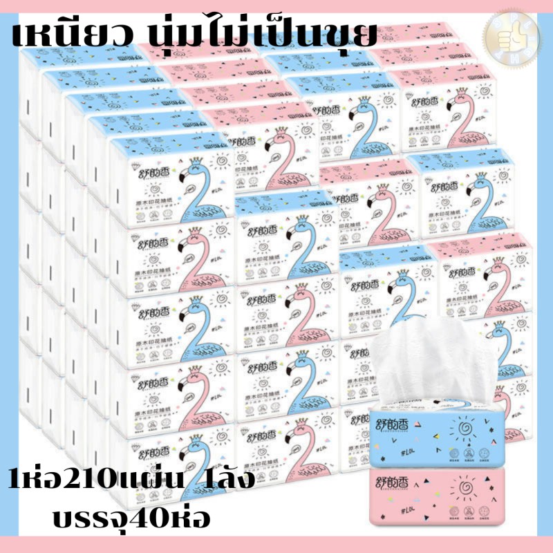 (ราคาลูกค้าใหม่) กระดาษทิชชู่ ยกลัง (1ลังมี40ห่อ) 1ห่อมี210 แผ่น ไร้ฝุ่น กระดาษเช็ดหน้าไม่เป็นขุย ไม่ยุ่ยง่ายราคาถูก D40