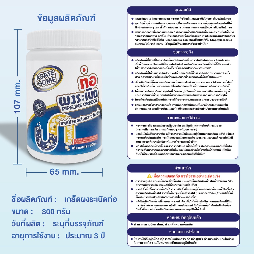 【Agate ของแท้】ผงล้างท่อ ท่อตัน ของแท้100% ผงระเบิดท่อ ผงท่อตัน ผงระเบิดคราบ ชักโครกตัน ดับกลิ่นท่อ ผงล้างไขมันอุดตัน